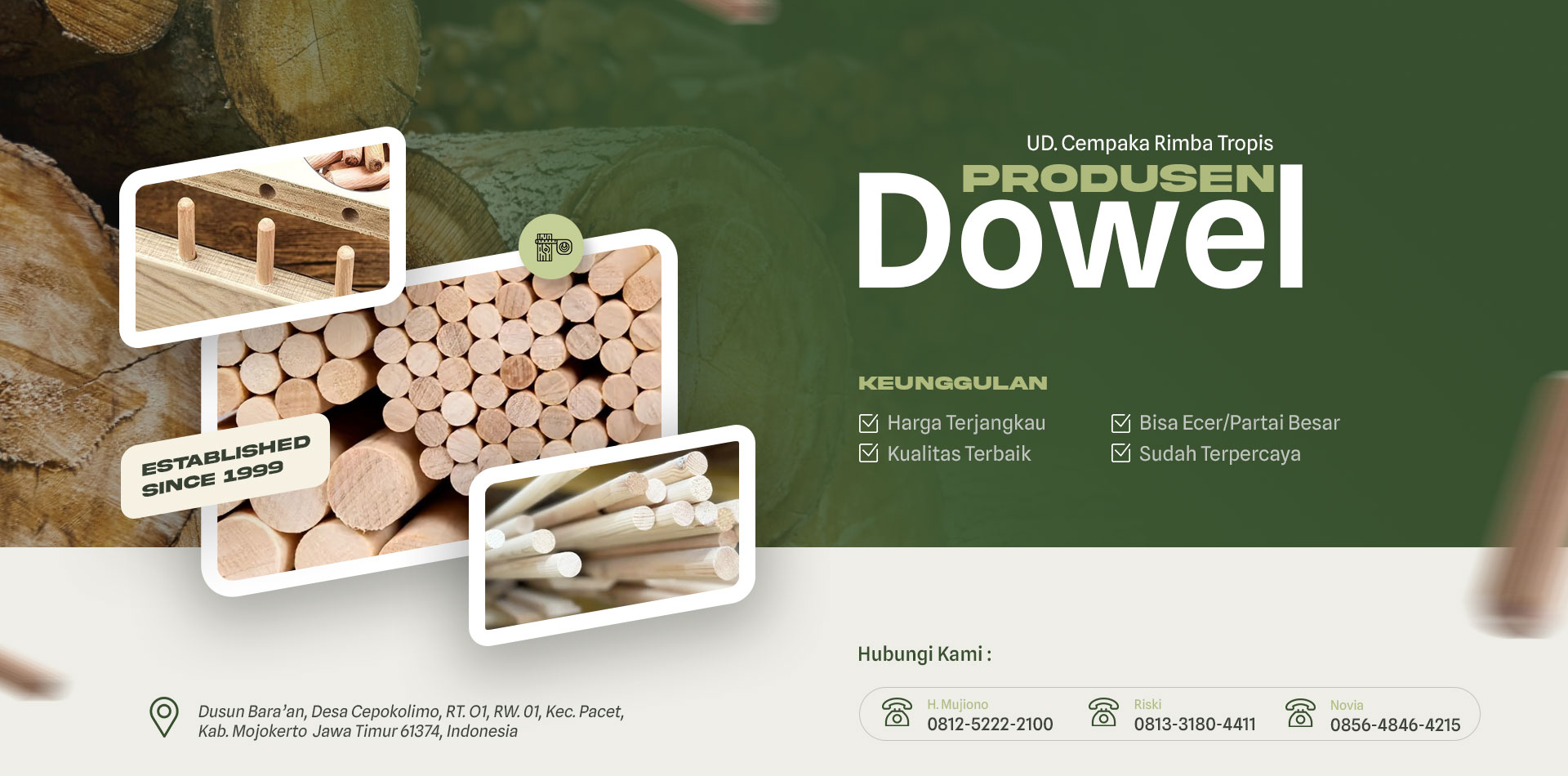 Kami siap melayani kebutuhan dowel dan olahan kayu, dari Mojokerto untuk seluruh dunia